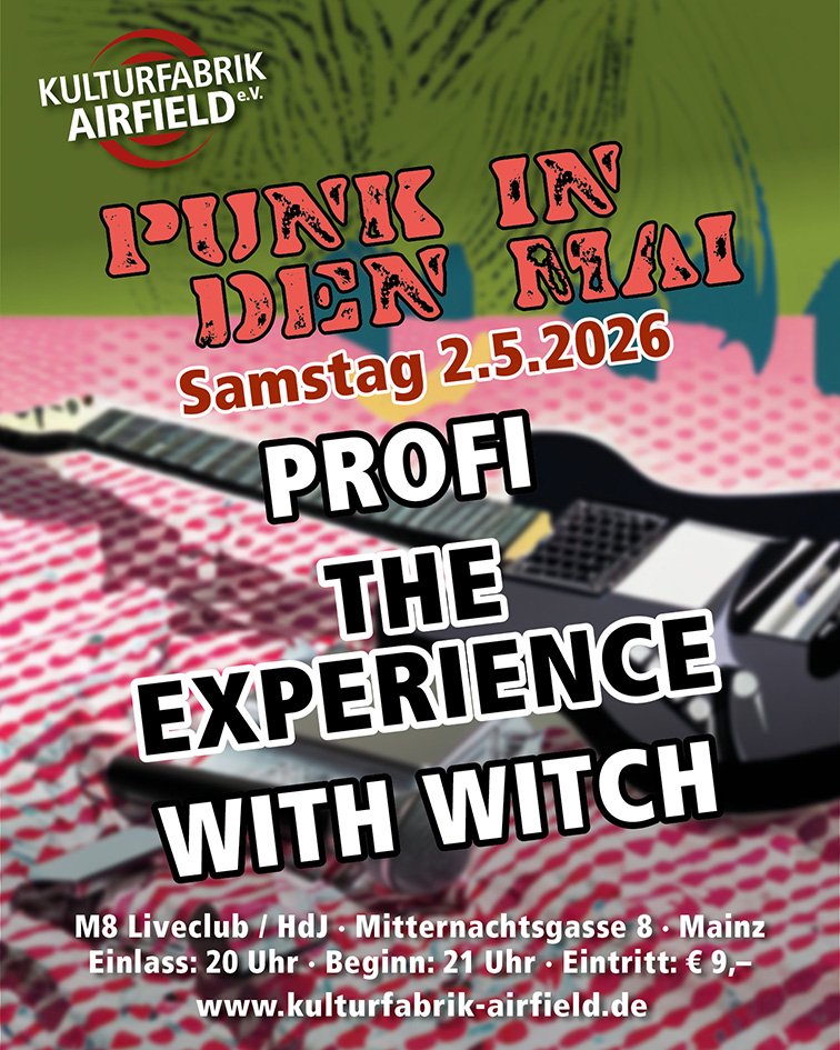 „Punk in den Mai“ lautet das Motto der nächsten Show aus der Veranstaltungsreihe der Kulturfabrik Airfield e.V. am Samstag, den 02.05. im M8-Club des Hauses der Jugend in der Mitternachtsgasse. Und den servieren The XPRNC, PROFi und With Witch backfrisch aus der brandheißen Rockröhre. THE XPRNC The XPRNC bringen sie Dir zurück – die 90er, […]